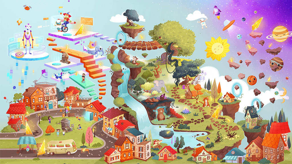 At this moment, with the falling of the star, a mysterious passage opens in the neighborhood that nobody knew before. With this passage, different universes get mixed up. Not only the neighborhood’s but also the inhabitants of all the universes have lost their way! The children of the neighborhood embark on a fantastic adventure to collect the star pieces scattered around different universes due to the collision, heal the star, and send it back to its place in the sky.