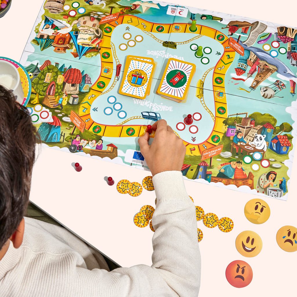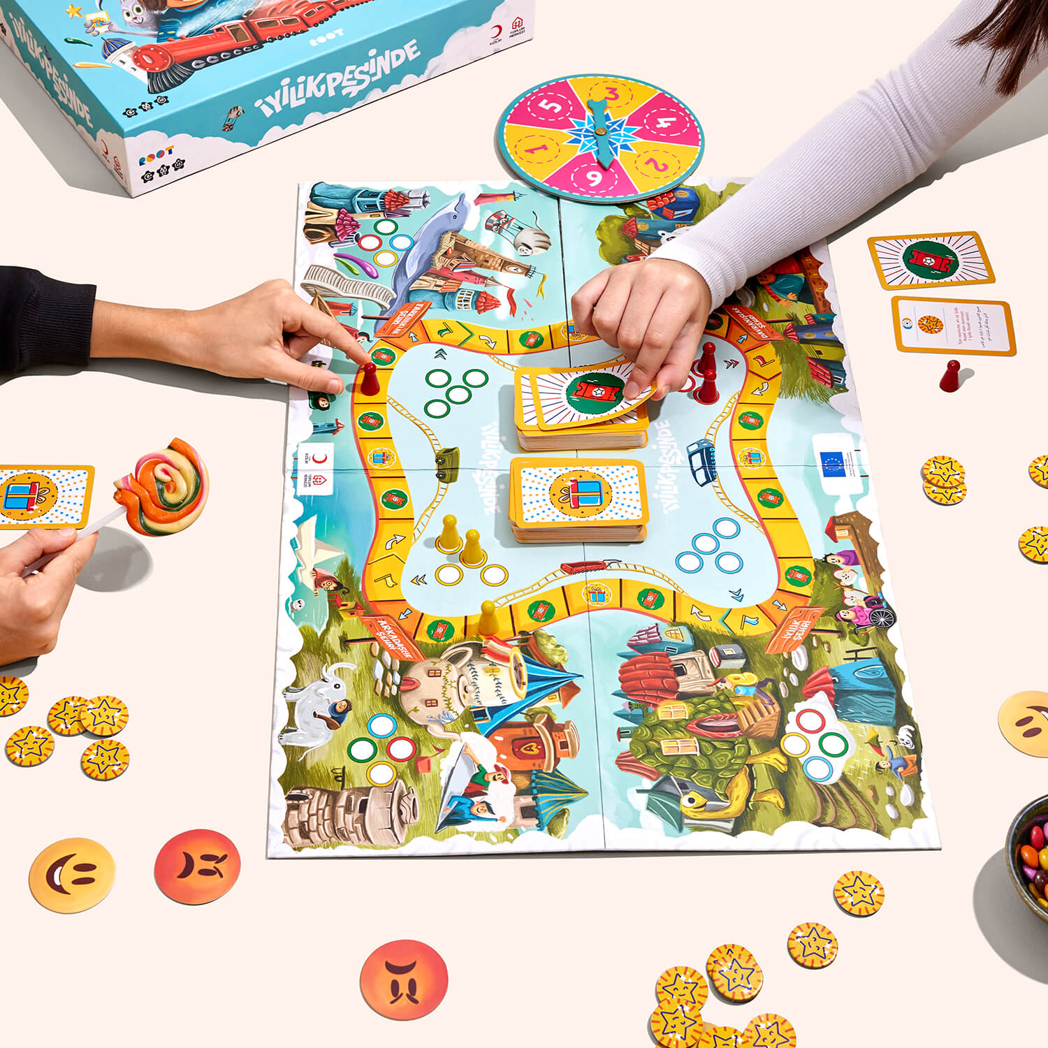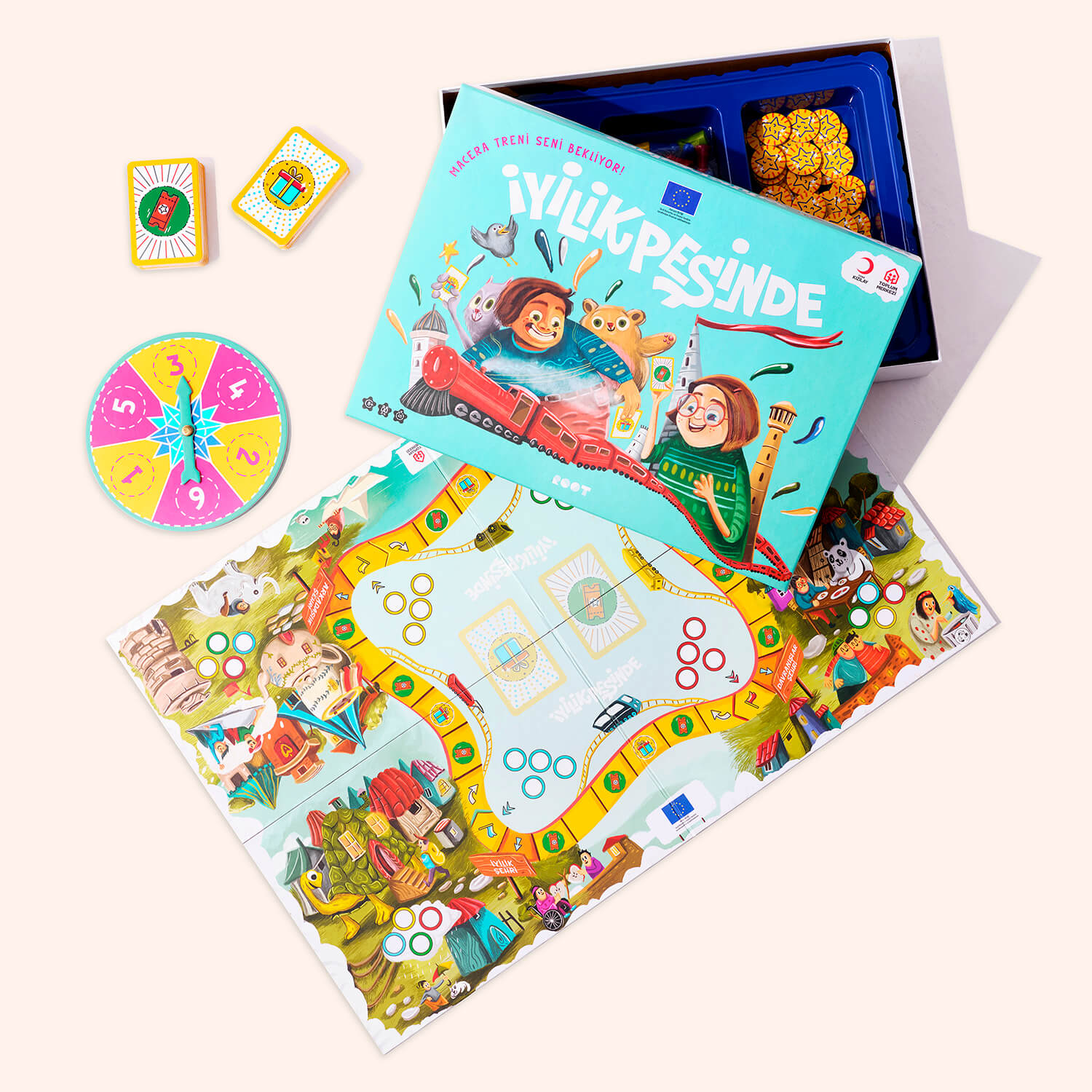 In this board game where you will progress by spinning the wheel, the kindness you do will earn you the tickets you need to continue your journey.